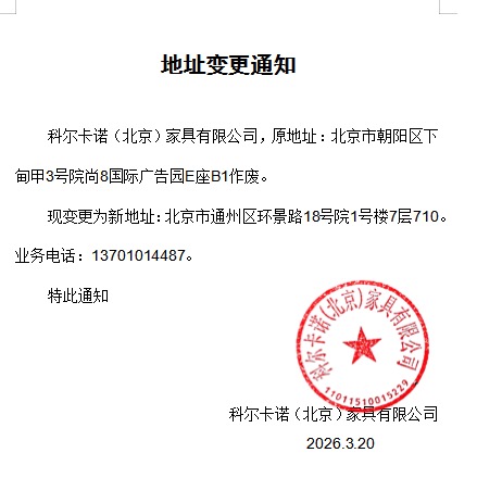科尔卡诺北京公司地址变更通知
